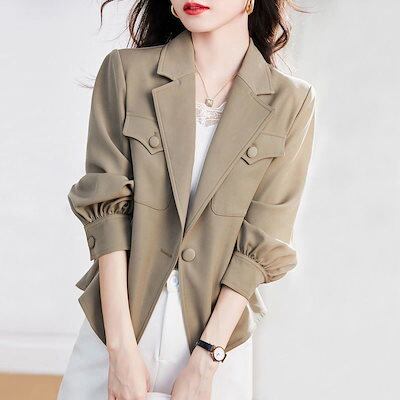 アウター カジュアル ロングスリーブ ジャケット レディース 秋の新作 スーツ トップス ゆったり ショート トレンチコート 韓国