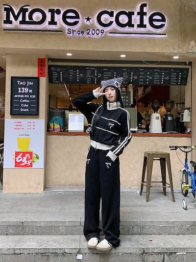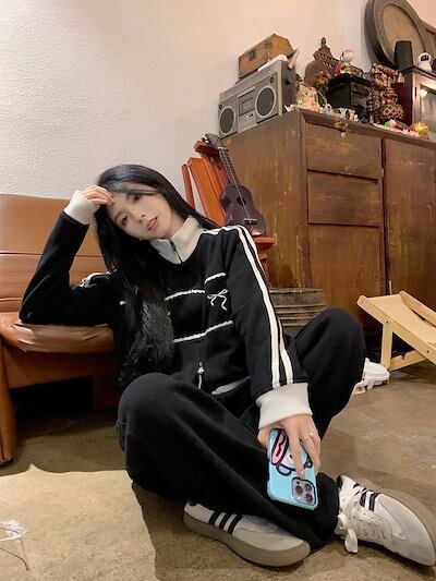 2024 秋 上下2点セット トップス お出かけ韓国 羽織り ショート丈フルラウンドヘムサイズ丈ボトムス ストレート系冬 ゆったりレディースシルエット スタイルアップワイドお出かけトラック
