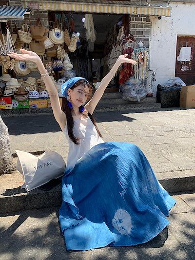 2024春夏タイダイ柄グラデーション キャミワンピース ノースリーブ ワンピース ロングワンピース 体型カバー レトロ 韓国ファッション レディース レトロ 大人可愛い