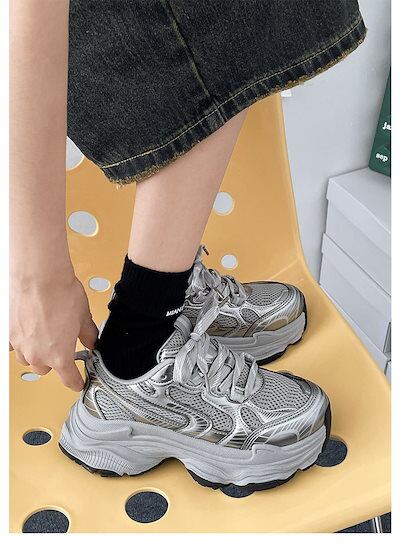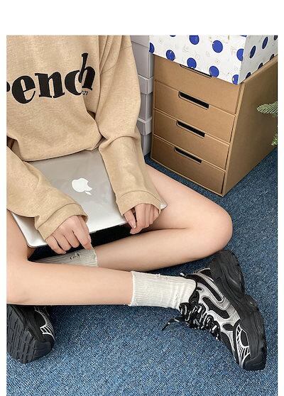 2024秋 好感度UP カジュアル ファッション系 PU 丸トゥ 切り替え スニーカー シューズ 靴 春 夏 冬