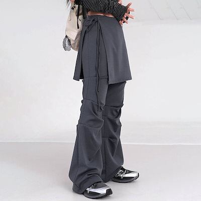 2024 春夏パンツ ロング丈 ワイド 韓国ストリート ハイウエスト 美脚効果 脚長効果 細見え かわいい ゆったり ルーズ カジュアル ファッション系 レディース お出かけ