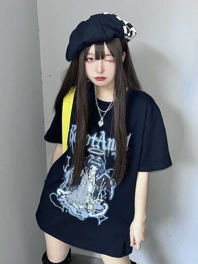 2024 夏 韓国 トップスかわいい Tシャツ ロング丈 ファッション半袖スリムフィット サイドファンタジーシルエット ゆったり 休日レディースサイズ韓国系黑おしゃれ カジュアルメンズライクT
