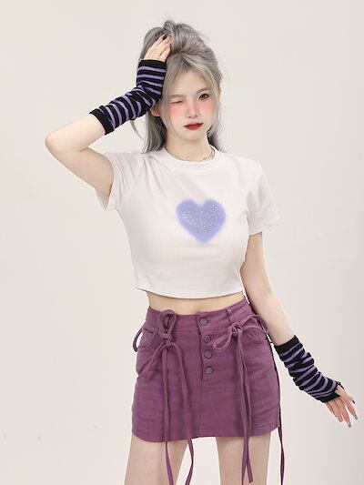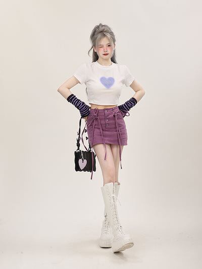 2024春夏 トップス 半袖 可愛い おしゃれ タイトフィット カットソー ラウンドカラー 重ね着丈 スリーブ 女っぽ レディース秋 Tファッション系 フェミニン きれいめ 色っぽ付き プリント