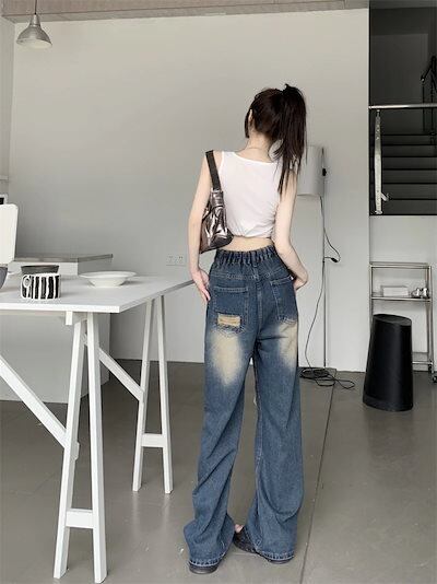 2024春夏 デニムパンツ ボトムス ジーンズ ファッション系スタイル ゆるダボ ジーンズ シルエット加工 カジュアル メンズライク