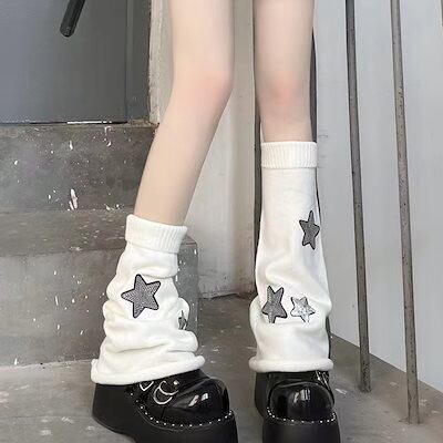 激安 jk ロリータy2k サブカル ブラック ニット レッグカバー 靴下 レディース ソックス