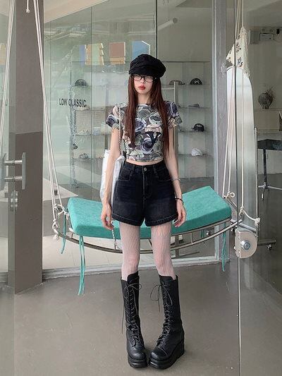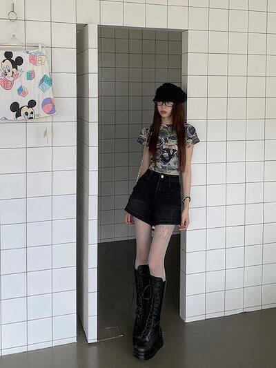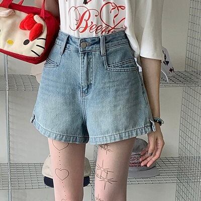 2024 春夏パンツ ショート丈 デニム ジーンズ ワイド ハイウエスト 美脚効果 脚長効果 細見え 夏 水色 黒 おしゃれ かわいい 韓国ファッション レディース お出かけ