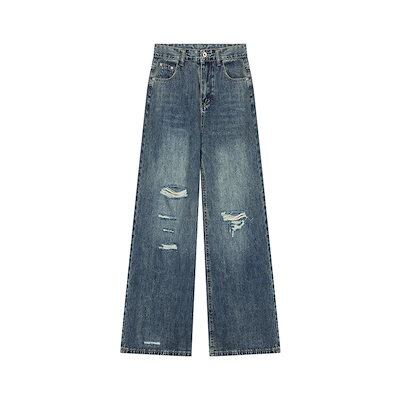 2024夏 韓国 デニムパンツ ボトムス ジーンズ ファッション系スタイル ゆるダボ ジーンズ シルエット加工 カジュアル メンズライク