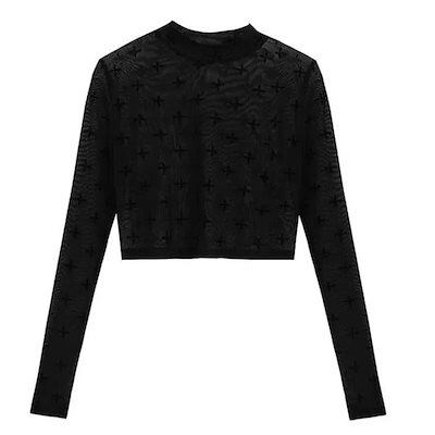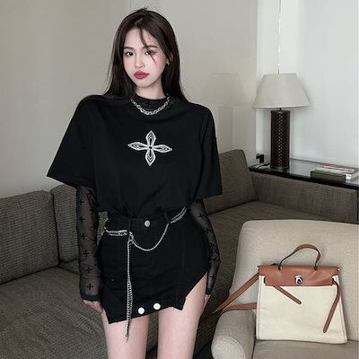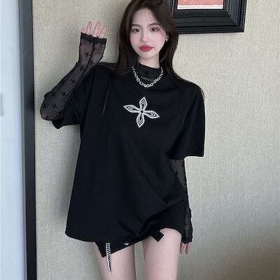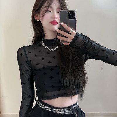 2024 春夏 女度を格上げ tシャツ ファッション トップス ショート丈 薄手 韓国系 長袖 薄手ネックフィット プリント レイヤード 重ね着 肌見せ 女っぽハイフレンチタイト レディース T