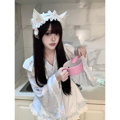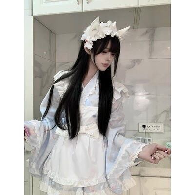 2024 ロリータ ドレス 可愛い少女プリントメイドワンピースフリルリボンエプロン 二点セット コスプレ ワンピース ロリータワンピース