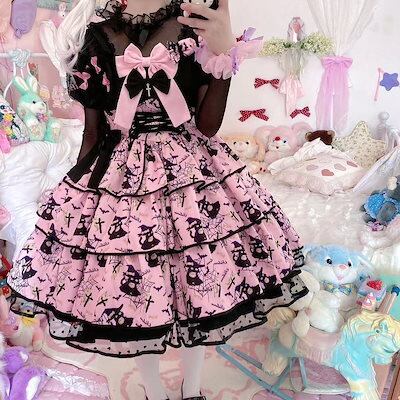2024 ロリータ ドレス 黒猫 スカートかわいいjskワンピース コスプレ ワンピース ロリータワンピース