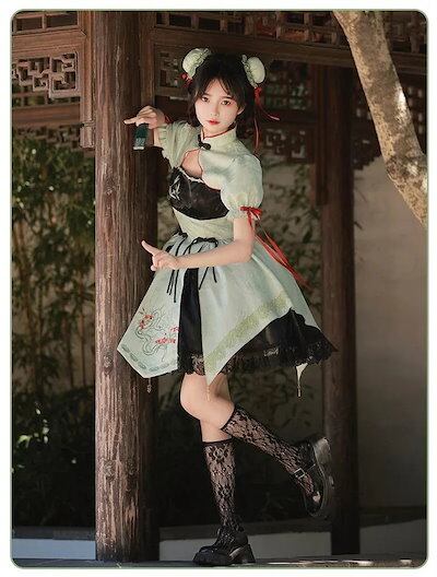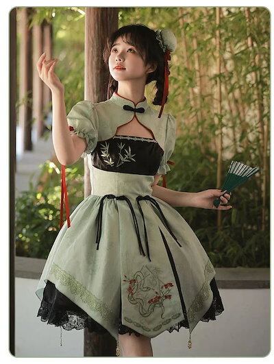2024 ロリータ ドレス パーティードレス ドールスカート ワンピース チャイナドレス ワンピース 中華風 JSK OP コスプレ 古風 お祭り 花火大会 盆踊り 夏祭り 文化祭 学園祭 お花見 七
