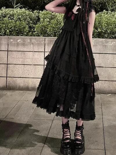 2024 ロリータ ドレス 黒のローズワンピースjsk花嫁可愛いプリンセススカートバースデードレス コスプレ ワンピース ロリータワンピース