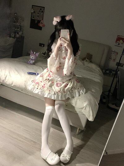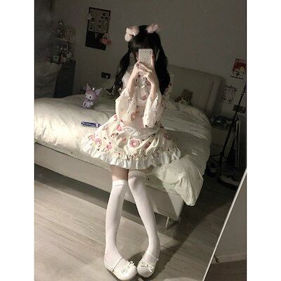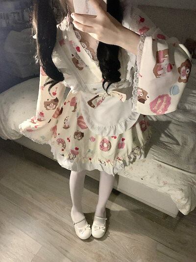 2024 ロリータ ドレス メイドプリントウエストデザイン感 長袖ワンピース エプロン スーツ女 コスプレ ワンピース ロリータワンピース
