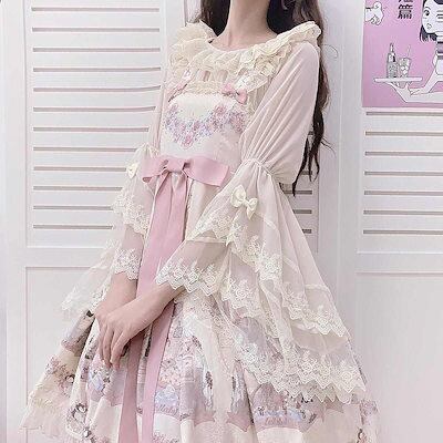 2024 ロリータ ドレス 可愛いワンピースインナー華やかレトロな袖ショート丈トップス女 コスプレ ワンピース ロリータワンピース