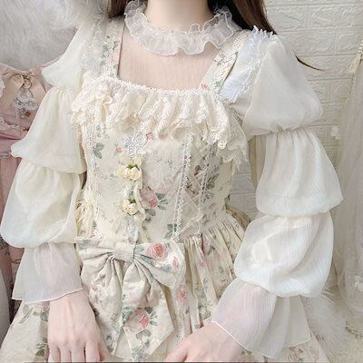2024 ロリータ ドレス インナーは上品な透かし彫りのゆったりとしたレースのシフォンシャツトップス コスプレ ワンピース ロリータワンピース