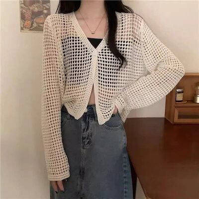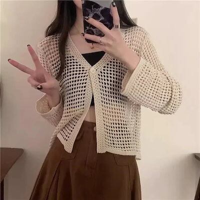 【3日間発送】 2024 新作 秋レディースカーディガン Vネックニットカーディガンショート丈トップス長袖薄手コート 紫外線対策 日焼け止めブラウス