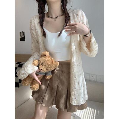 【3日間発送】 2024 新作 秋レディースカーディガン 透かし彫り長袖ニット の新作薄手デザインゆったり日焼け止 紫外線対策 ブラウス