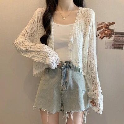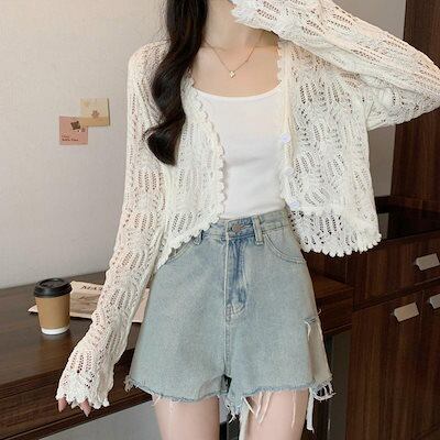 【3日間発送】 2024 新作 秋レディースカーディガン vネック薄手ニットカーディガン 透かし紫外線対策 日焼け止めアウターブラウストップス