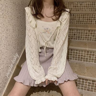 【3日間発送】 2024 新作 秋レディースカーディガン レトロな透かし編みバインドニットカーディガントップス 日焼け止め薄手 紫外線対策 長袖ブラウス