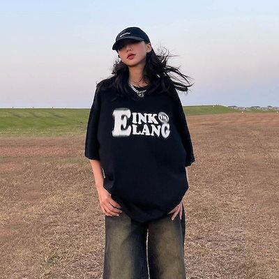 半袖 Tシャツ 2カラー ラウンドネック 着痩せ 英字 プリント ゆったり トップス 綿 快適 メンズ レディース 春 夏 カットソー カジュアル 原宿風 ファッション 10-40代