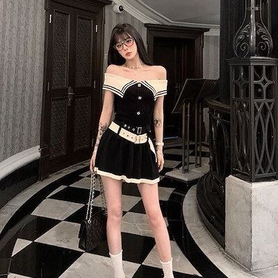 ロリータ 2024 新作 可愛い レディース 着痩せ ワンショルダー ワンピース ニット スカート枚 やせて見える ベルトを送るサンタコスプレ