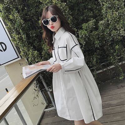 港風 シャツワンピ レディース ホワイト ブラウス 春夏新品 ゆったり 長袖 Aラインワンピース