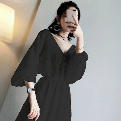 スリミング 着痩せ ワンピース 韓国ファッション 大きいサイズ ロングドレス 気質 レース Aラインスカート