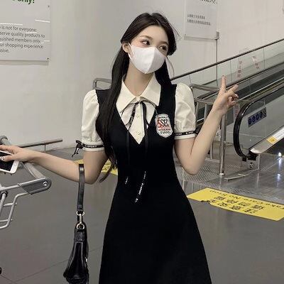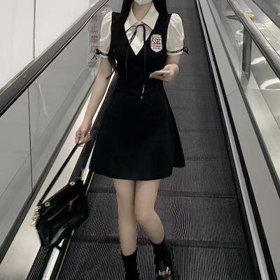 制服 アカデミック フェイクレイヤード ワンピース 着痩せ ブラック 着痩せサンタコスプレ