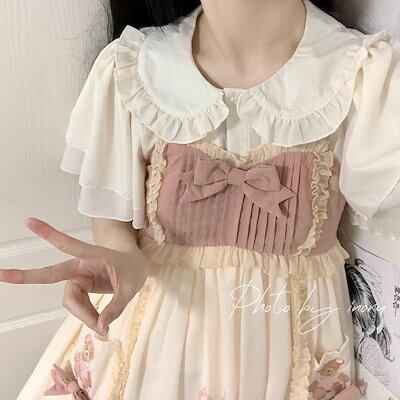 ロリータ コスプレ 2024 新作 ロリータドレス 着痩せ サロペットワンピース+シャツ 2点セットサンタコスプレ