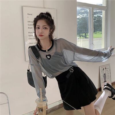2024 春夏 女度を格上げ tシャツ ファッション トップス 着痩せ 薄手 韓国系 長袖 薄手フィット プリント レイヤード 重ね着 肌見せ 女っぽハイフレンチタイト丈 レディース T | Jeannede ジャンヌデ