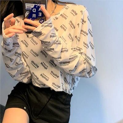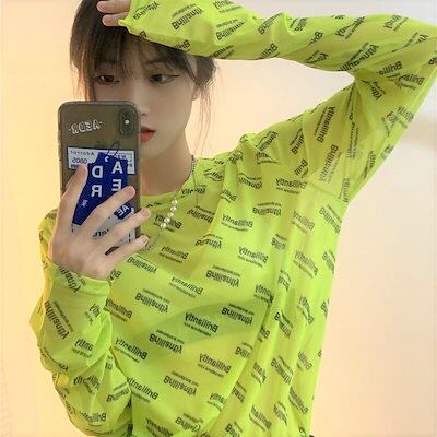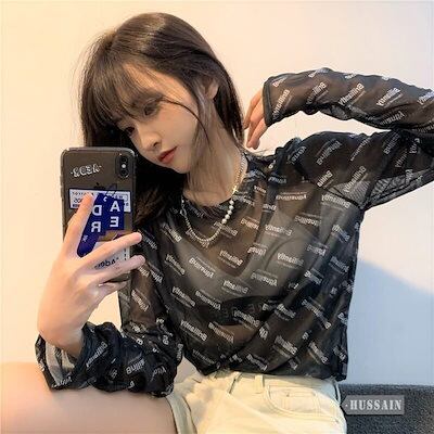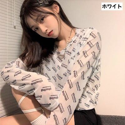 透けアイテム を楽しむ 透明感UP tシャツ ファッション 着痩せ 韓国 トップス デザイン カットソー イラストエンジェル 長袖 ロングプリント カジュアル 夏春 秋