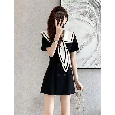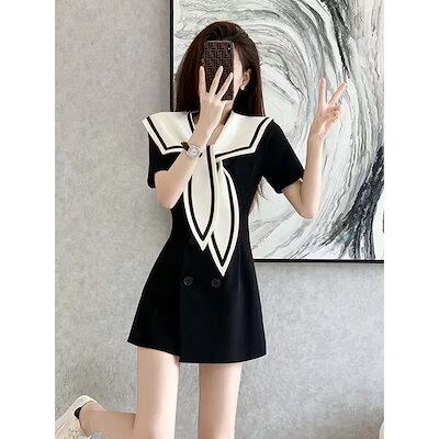 新しい 気質 小香風 ワンピース レディース 着痩せ スリミング 半袖ワンピース ダブルブレスト ドレス