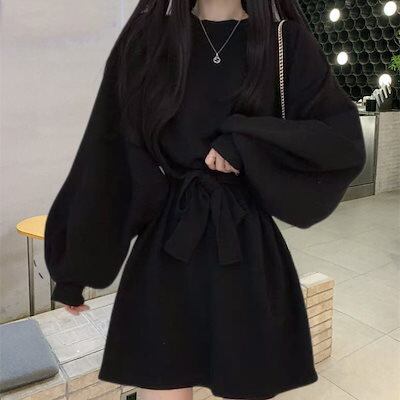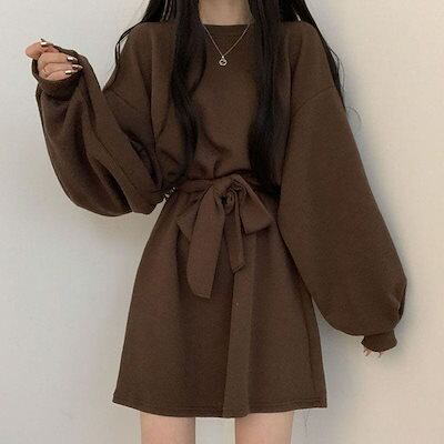 怠惰風 長袖ワンピース 秋冬新しい レディース 着痩せ パフスリーブ Aラインワンピース ドレス 学生
