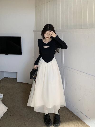 新作 高級感 プリンセスワンピース セクシー 透かし彫り 着痩せ ウエスト引き締め 長袖ワンピース ドレス