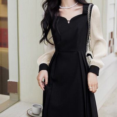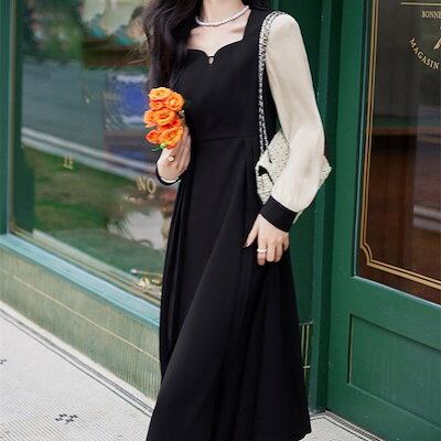 おしゃれ 気質 長袖ワンピース 春秋新作 レディース ロングドレス スリミング 着痩せ パーティードレス