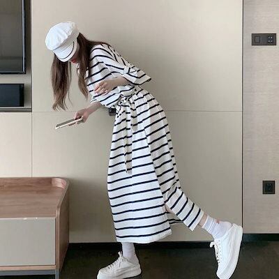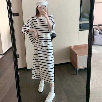 ロングワンピース/サマーウェア/Tシャツワンピース/着痩せ 韓国ファッション 半袖ワンピース/ゆったり 可愛い ワンピース/S-3XL