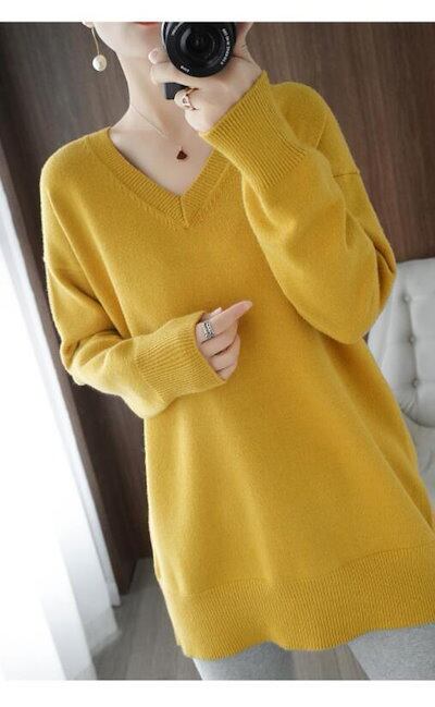 スウェット カシミヤタッチベーシックニット 冬でもブラウス パーカー セーター Vネック 厚手 ニットカーディガン トップス ゆったり ニット セミロング丈 無地 アンダーウェア