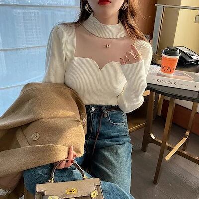 スウェット カシミヤタッチベーシックニット ニットカーディガン アンダーウェア セクシー 高級感 トップス メッシュ 着痩せ