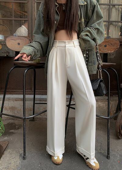 2024 春秋パンツ ロング丈 ワイド ストレート ハイウエスト 美脚効果 脚長効果 細見え 秋 黒 白 緑 おしゃれ かわいい 韓国ファッション レディース お出かけ