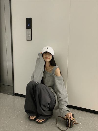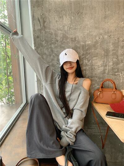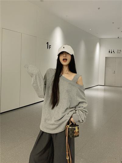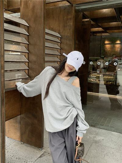2024 秋冬 トップス 長袖 かわいいラウンドネック Tシャツ 肌見せ レディース 韓国風 ルーズ ゆったり 無地 カジュアル おしゃれサイズ シルエットファッション系コーデ衣装お出かけ