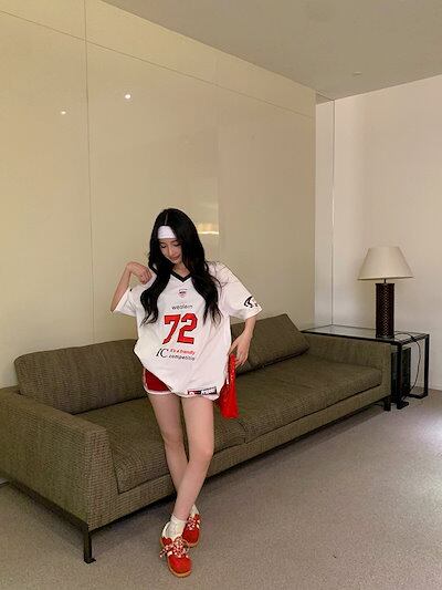2024 夏 韓国可愛い風トップス Tシャツ ファッション 半袖 スリムフィット サイドペイントシルエットゆったり丈 休日レディースサイズ韓国Vネック おしゃれ カジュアル メンズライクフットシャツ