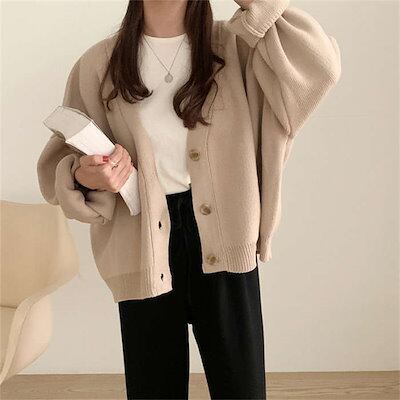 カーディガン レディース トップス ニットカーディガン ニットコート アウター マキシニット カーデ ドロップショルダー 肩を落とす ルーズ 袖口折り返す 秋冬 暖かい 長袖 シンプル 無地 シルク調