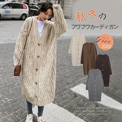 カーディガン レディース 秋冬 ロングカーディガン ニット コート ロング アウター マキシ ニット ロングカーデ ロングニット アウター 羽織り 長袖 前開き ゆったり 大人 シンプル 無地 厚手