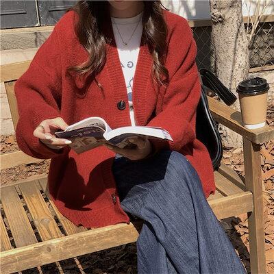 カーディガン レディース 秋 ニット 羽織 セーター 前開き 冬 アウター コート ゆったり 体型カバーノーカラー 長袖 お尻隠し きれいめ おしゃれ かわいい お出かけ 防寒 暖かい 保温性 ピンク
