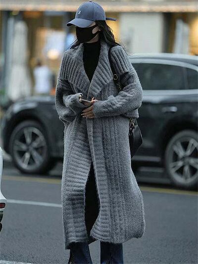 ロングカーディガン 秋冬 レディース コート ニット カーディガン 秋定番コート 厚手 コーディガン 長袖 羽織り ロング丈 セーター アウター ロングニット ルーズ ニットカーディガン リブ 畦編み