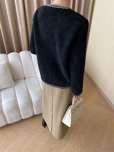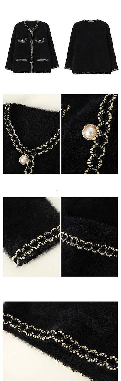 カーディガン ボレロ レディース 長袖 ノーカラー ニット パールボタン ジャケット アウター ノーカラージャケット ツイードカーディガン 春 秋 冬 ショート丈 丸首 無地 生地 きれいめ ツイード