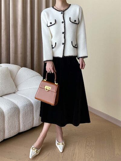 ニットカーディガン レディース 春秋 長袖 カーディガン ボレロ ノーカラー 襟なし ノーカラージャケット フェイクミンクカーディガン ショット丈 アウター ジャケット きれいめ 無地 春ジャケット
