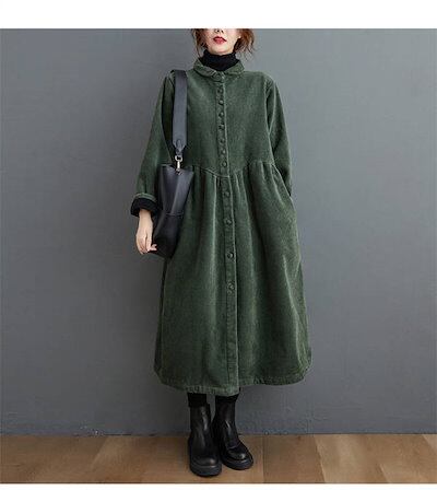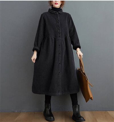カーディガン コーデュロイ 裏起毛 ロングコート レディース ワンピース 秋冬コート アウター 秋冬ワンピース 裏起毛 ワンピース ワンピ きれいめ ポケット ゆったる 暖か 大きいサイズ シンプル