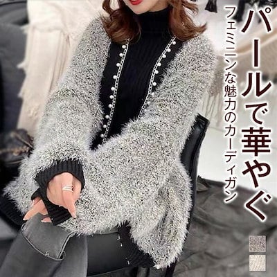 ニットカーディガン レディース カーディガン ショート丈 パールボタン パール付き ニットカーデ 長袖 ショート丈 ニット トップス ゆったり 上品 オフホワイト グレー きれいめ カジュアル オフィ