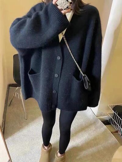 ニットカーディガン 秋 春 カーディガン レディース 春秋 ニット アウター 大きいサイズ ゆったり 前開き トップス ゆるカーデ 羽織 もこもこ 暖か 厚手 ふわふわ キレイめ ゆったり カジュアル